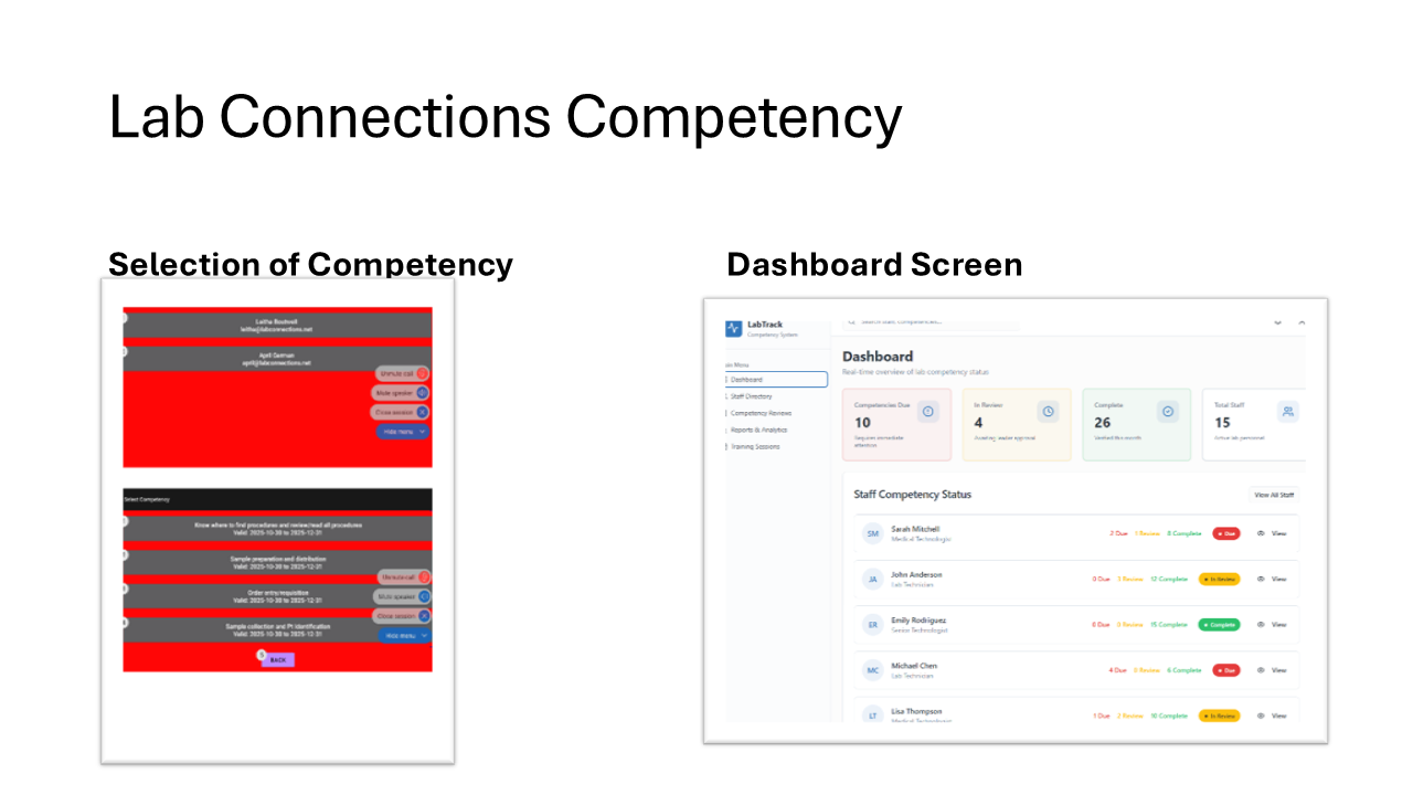 Recognizing the inefficiencies in traditional competency assessment, April and Leitha saw an opportunity to transform how laboratories approach this essential process. Their goal was ambitious: to create a software solution that would streamline competency management from start to finish, replacing outdated manual systems with a smarter, more integrated approach. They envisioned a complete reimagining of the process—leveraging modern software and hardware to make competency assessments not only easier to administer but more meaningful, interactive, and aligned with today’s laboratory operations.